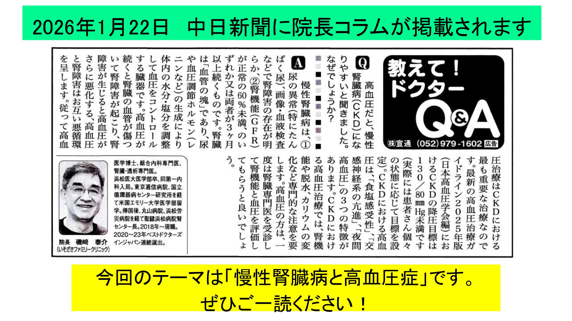 1月22日(木)の中日新聞「ドクターQ&A」の欄に