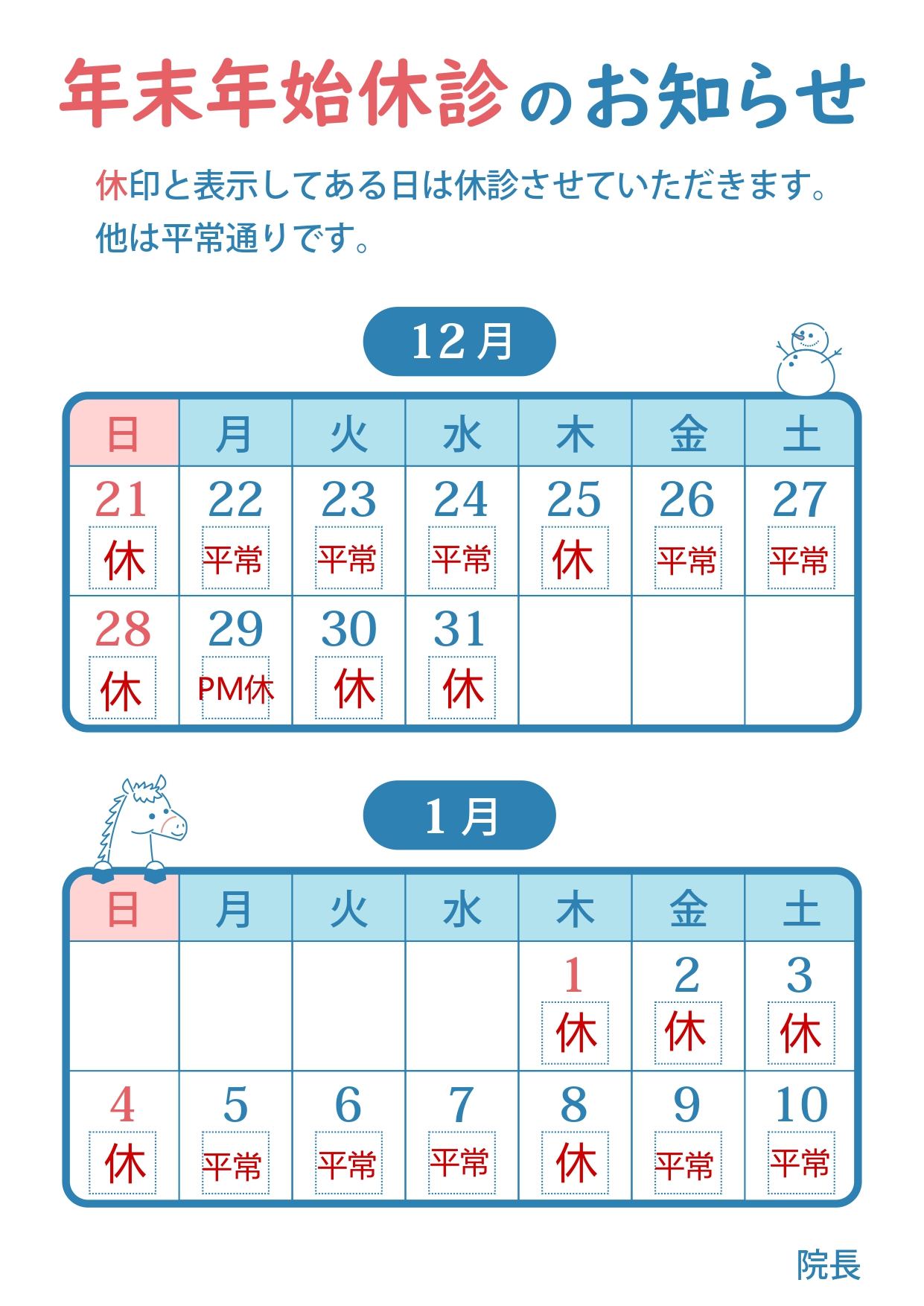 都合により、12/2(火)と12/16(火)の小児科の午前診療開始時間を遅らせて頂きます。